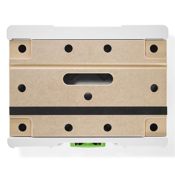 Your mobile workstation on the go: With the Systainer³ MFT, you’re all set for those little tweaks wherever you are. Whether it’s sawing, drilling, or sanding – you can handle it all effortlessly on the MDF perforated top of the Systainer³ MFT. Fastening clamps and spanners are easily secured in the Systainer lid's perforated top, so you can fasten workpieces of all shapes – even round rods and pipes. The built-in adhesive cushion strip made of foam rubber gives you extra grip when laying down sheets or square timber. And what about your accessories? You can simply stash them away inside the Systainer once you’re done – keeping everything neat and tidy.